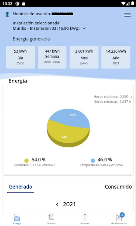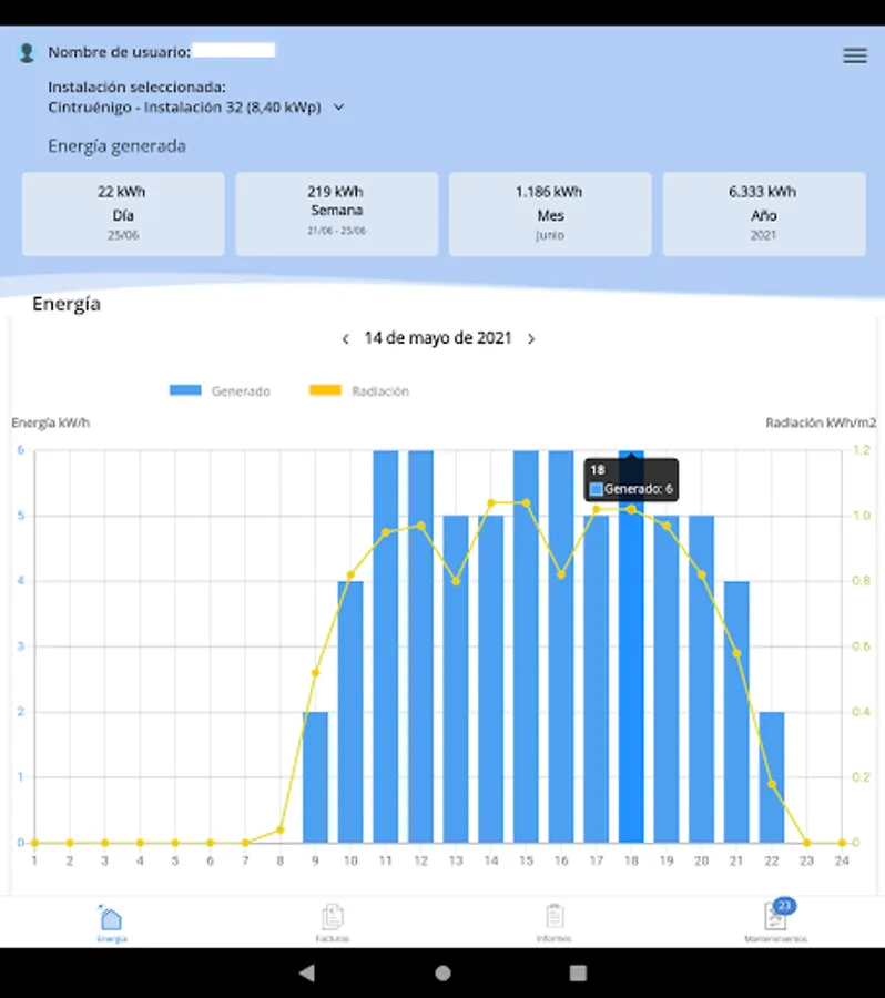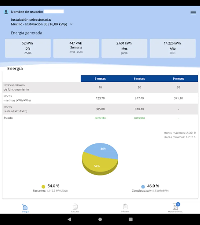 From this section, the owners will be able to access the production data of the facilities located in the Solar Photovoltaic Plants that RIOS RENOVABLES has around the world.