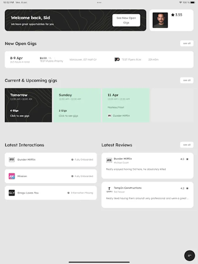 TempIn is a flexible gig app; connecting professionals in the hospitality and events space with short term gigs through a seamless and fun experience.