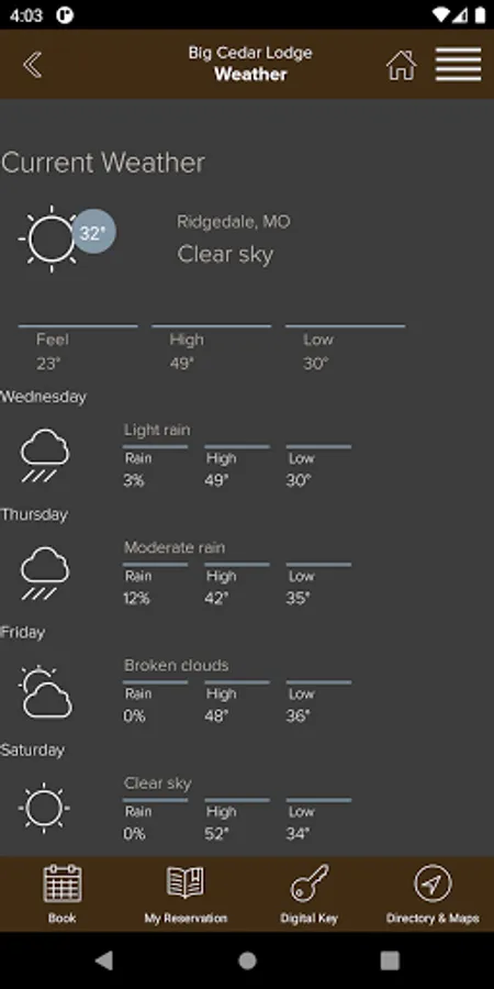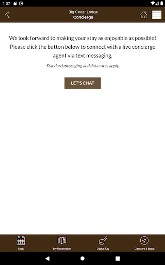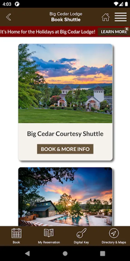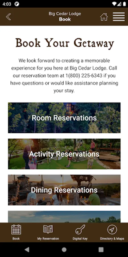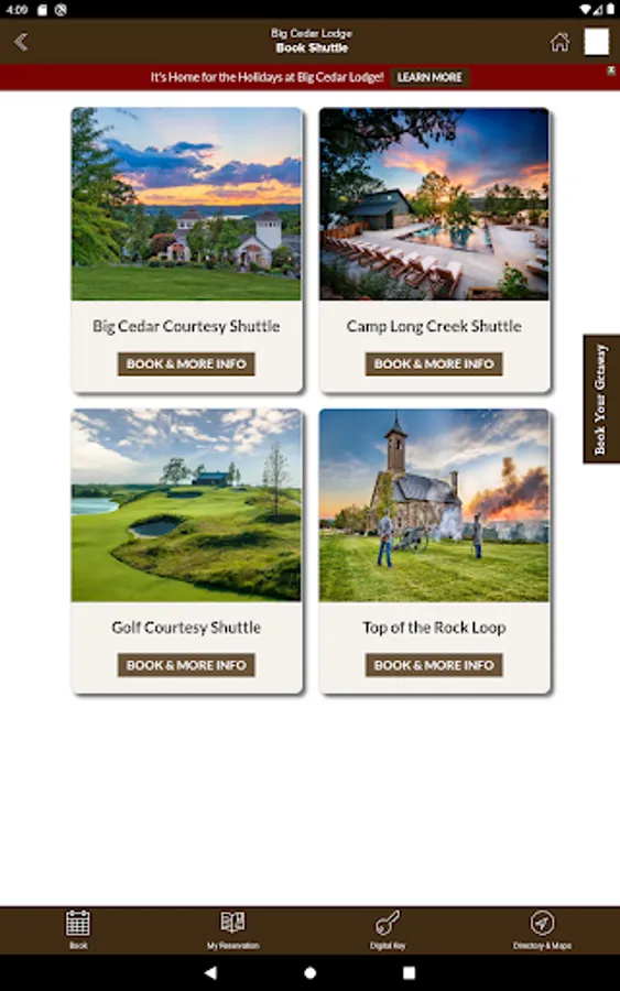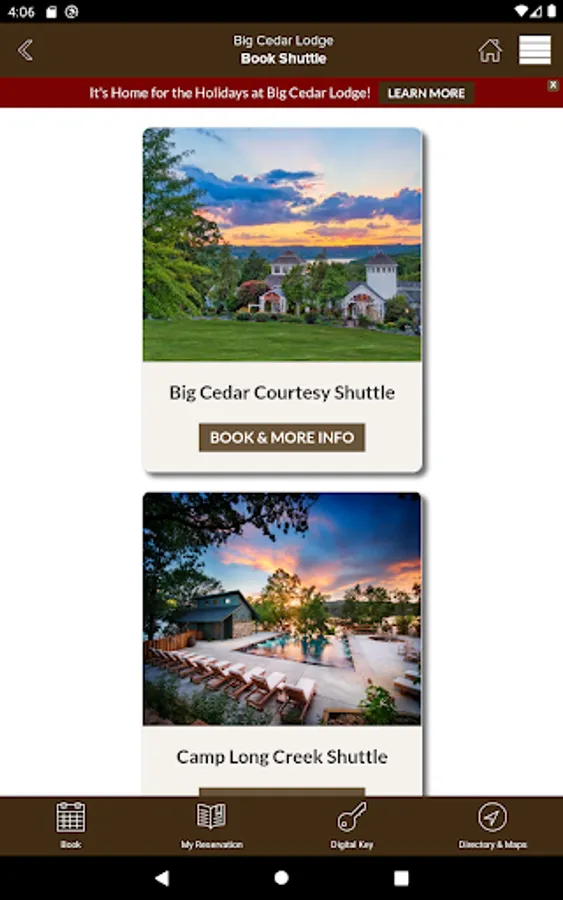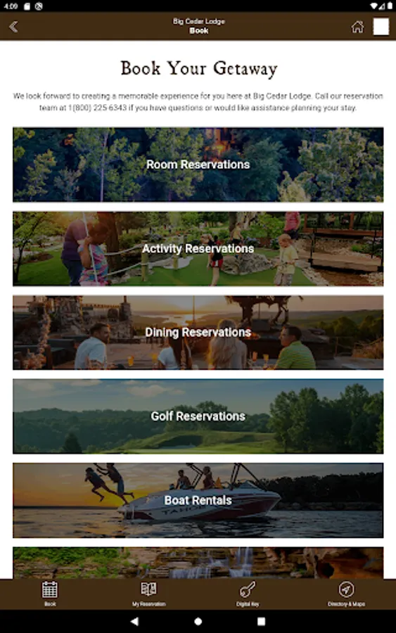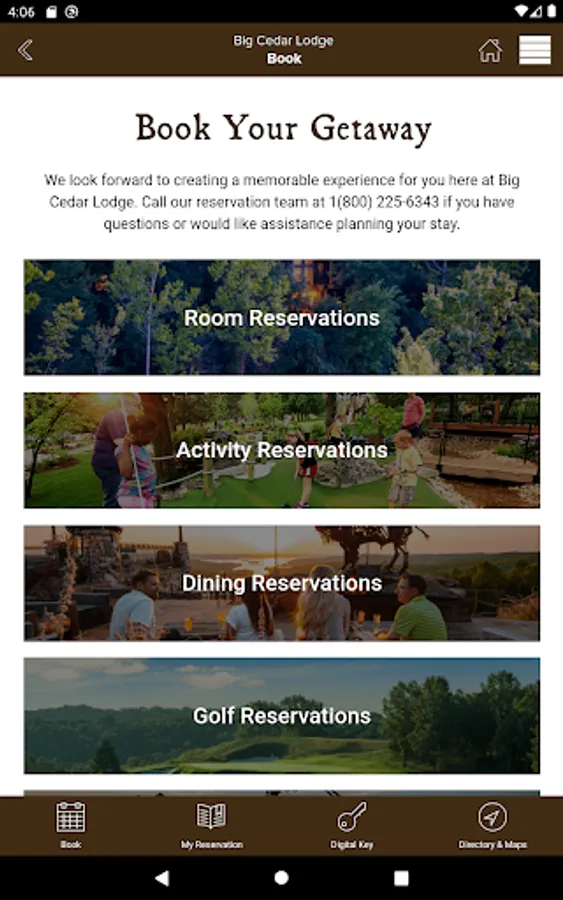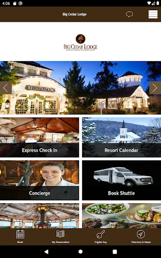 The Big Cedar Lodge app contains information and hours for the various properties, restaurants, golf courses, and attractions which are part of the Big Cedar Lodge experience.