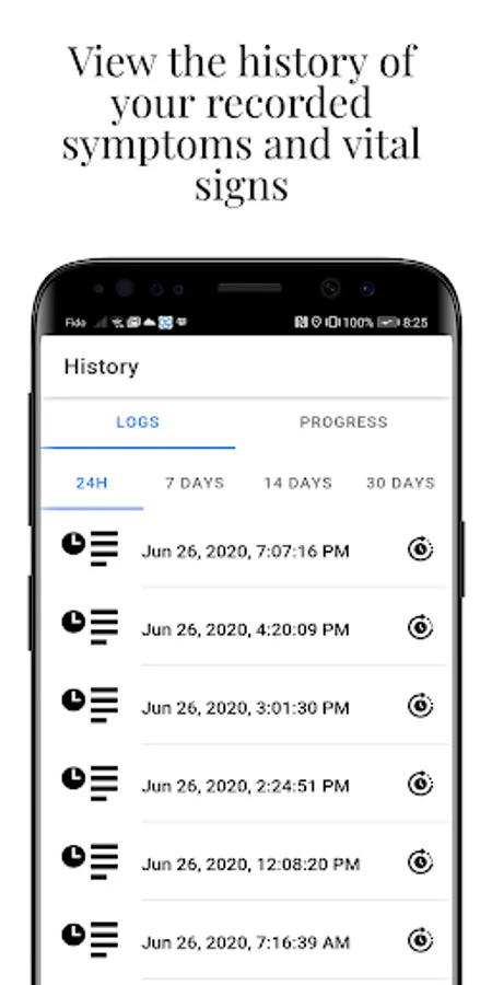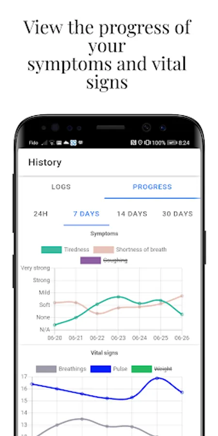 This application can help you better track your symptoms and vital signs. By logging your symptoms and vital signs periodically, you can review the history anytime and see the progress.