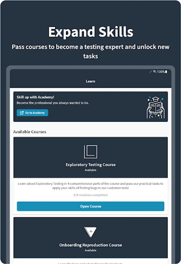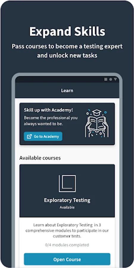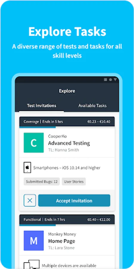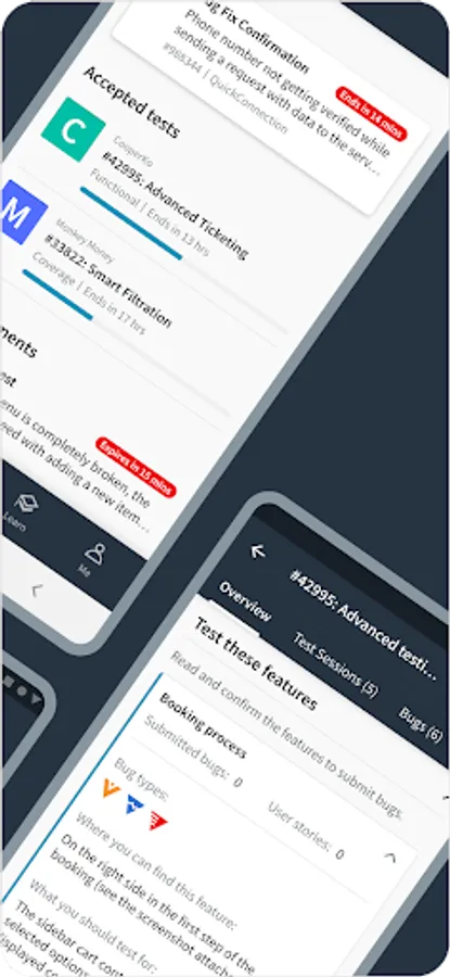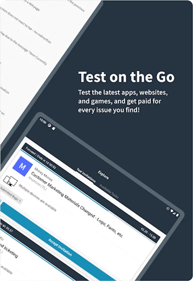 Our focus is to make testing on the go as easy as possible. We offer an overview of all available projects and tasks, intuitive submission forms with smart AI hints, and reminders of ongoing tasks and requests — all to support you in your testing journey.