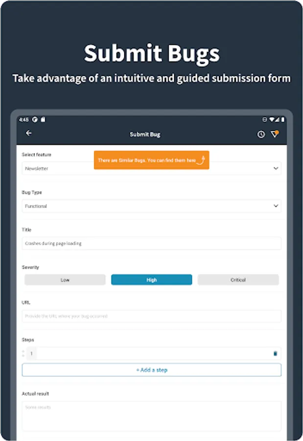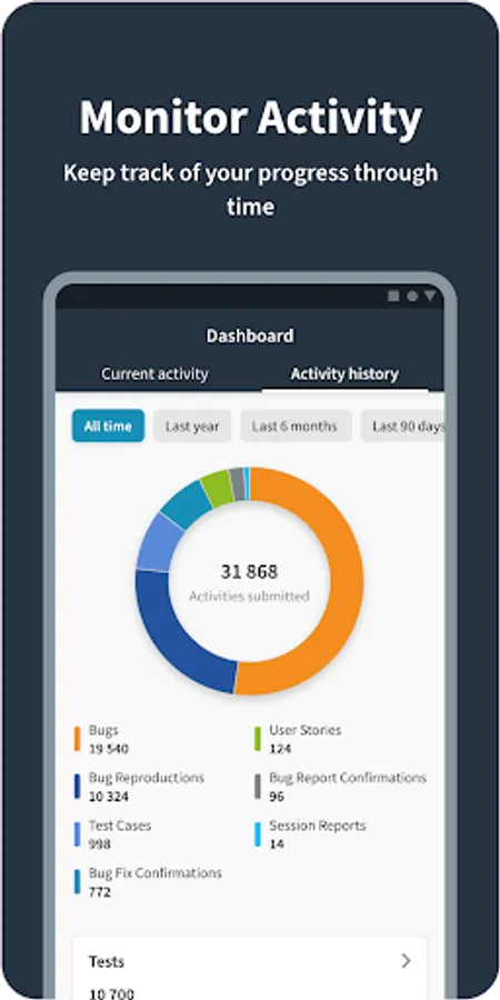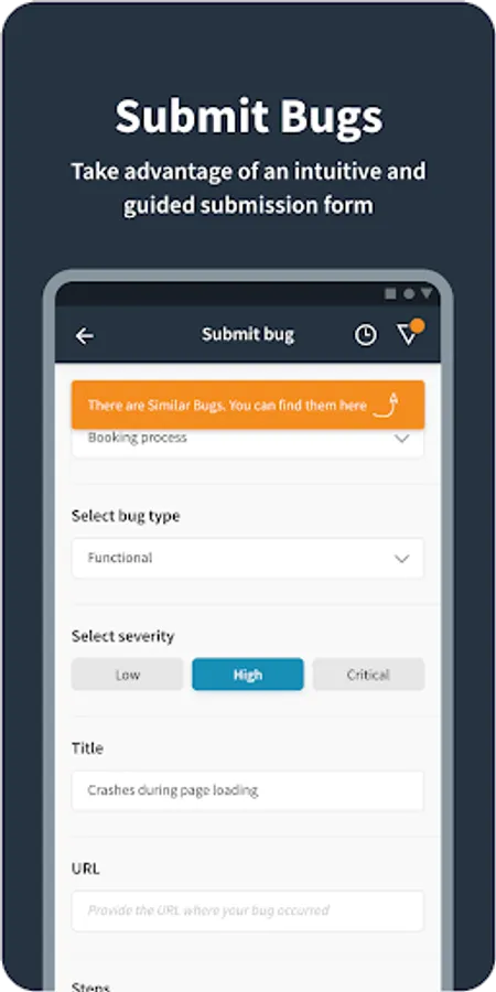 * Access test and bug details (including all file formats provided in the description) directly from the app