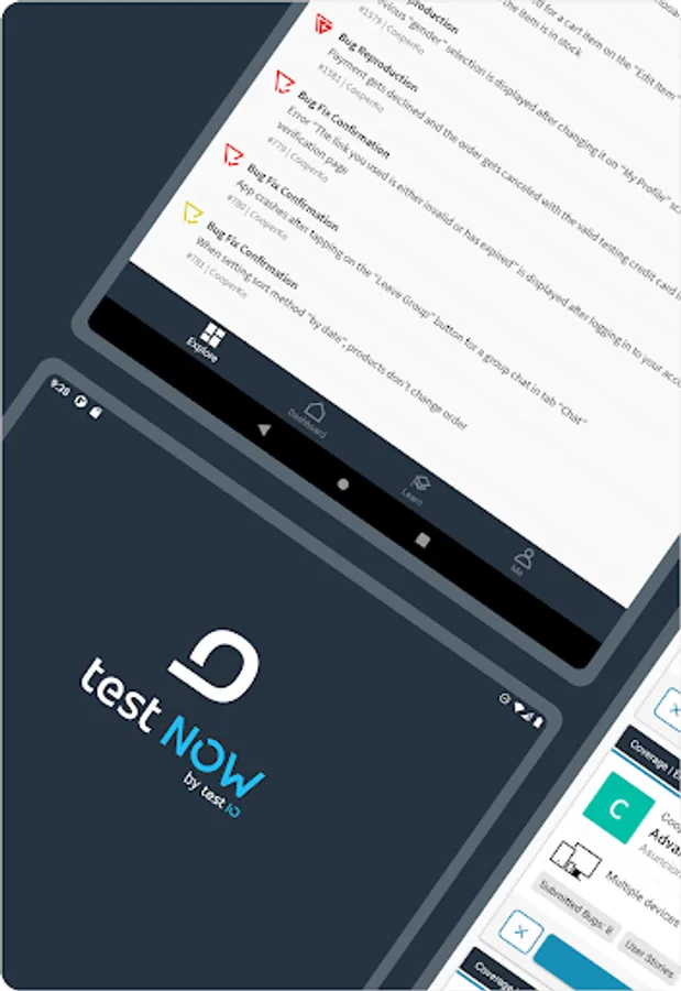 testNow is test IO’s app for freelance testers. It allows you to test the latest apps, websites, and games on the go and get paid for the issues you find. Why not earn some extra money? You decide when and where you want to work.