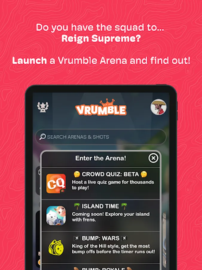The crew at Vrumble will be running weekly crowd trivia games as well as tournaments.