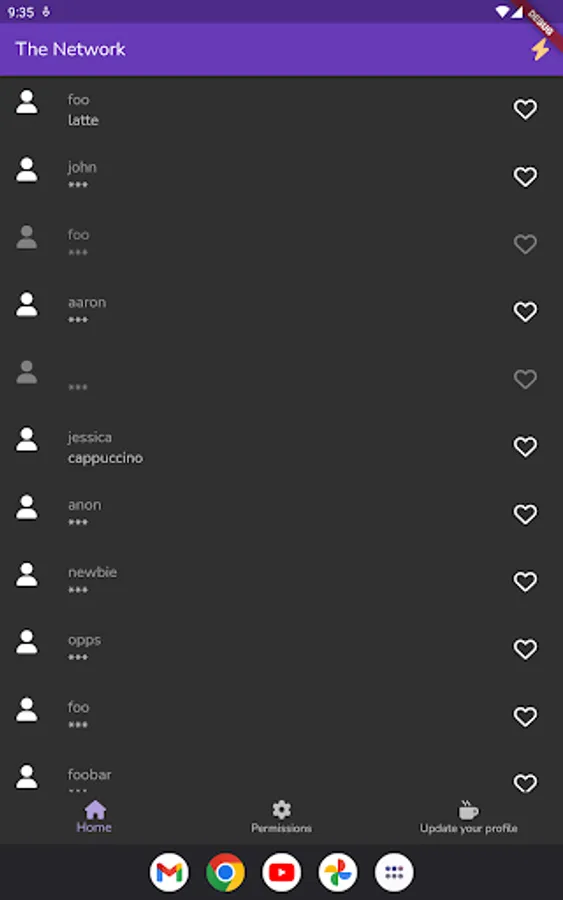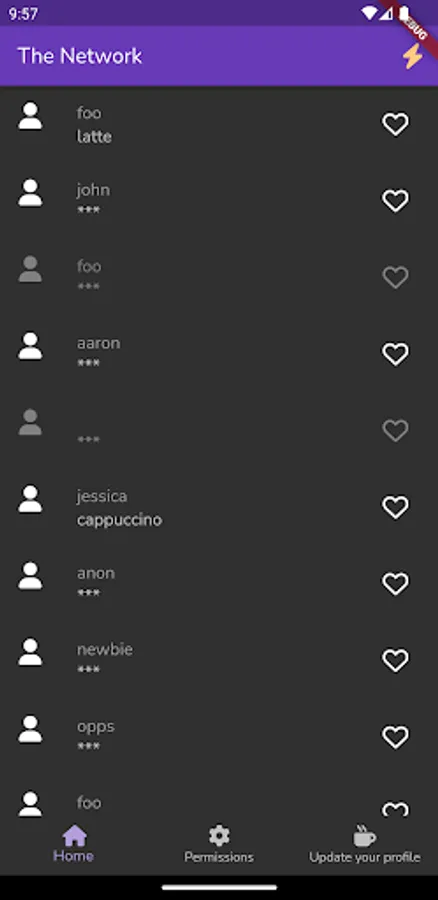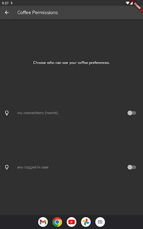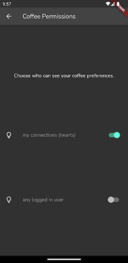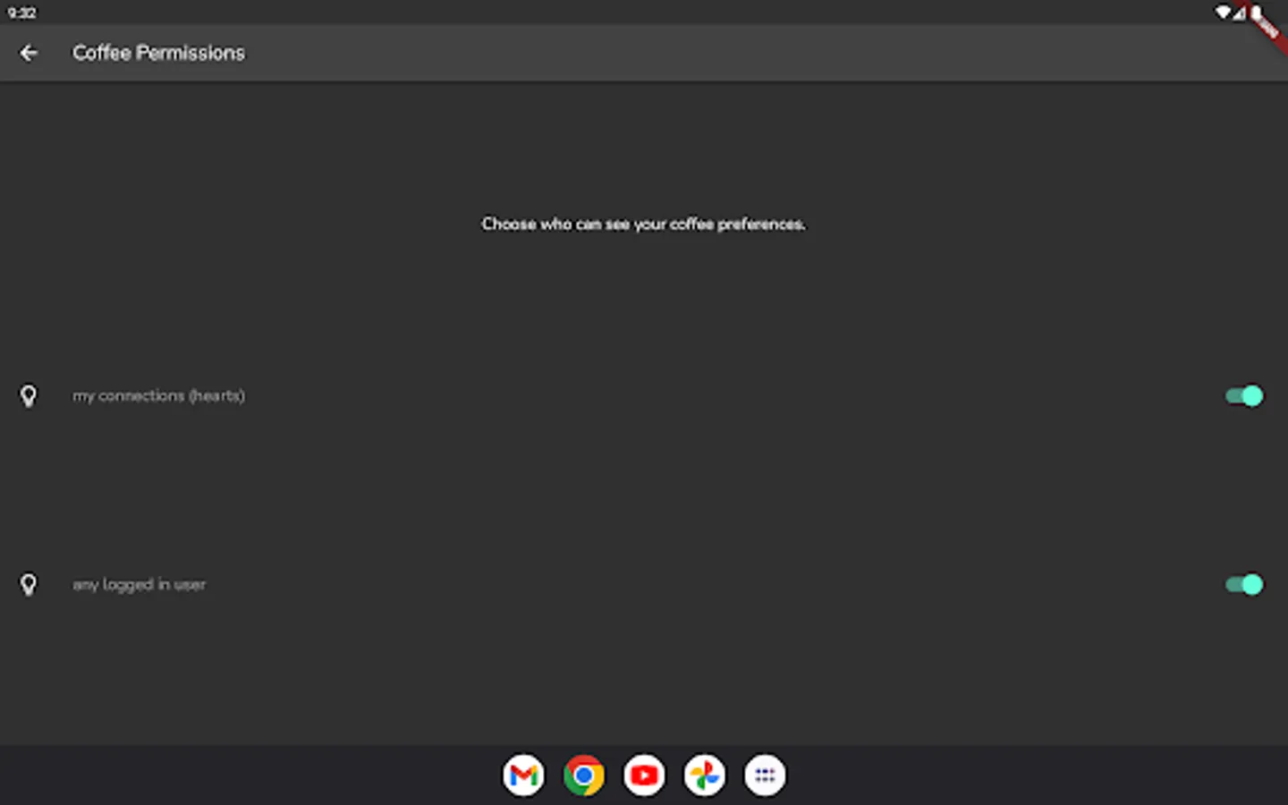 Lets your store and share coffee and other preferences, see other people on the network, add contacts, and set permissions for your coffee and other preferences (coffee, tea, dietry info).