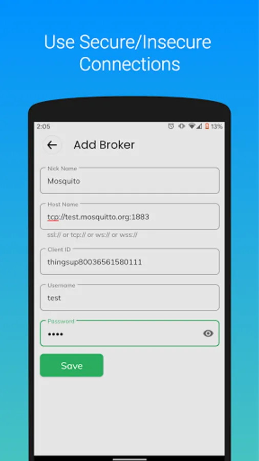 ★ Connect to Secure (TLS) and Insecure (TCP) MQTT Brokers.