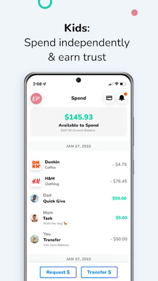 Give kids money when they need it, monitor their spending, and help them set saving and spending goals. From weekly allowance payments and rewards for doing tasks to seamless quick gives, you can help kids spend, earn, and save their way to financial independence.
