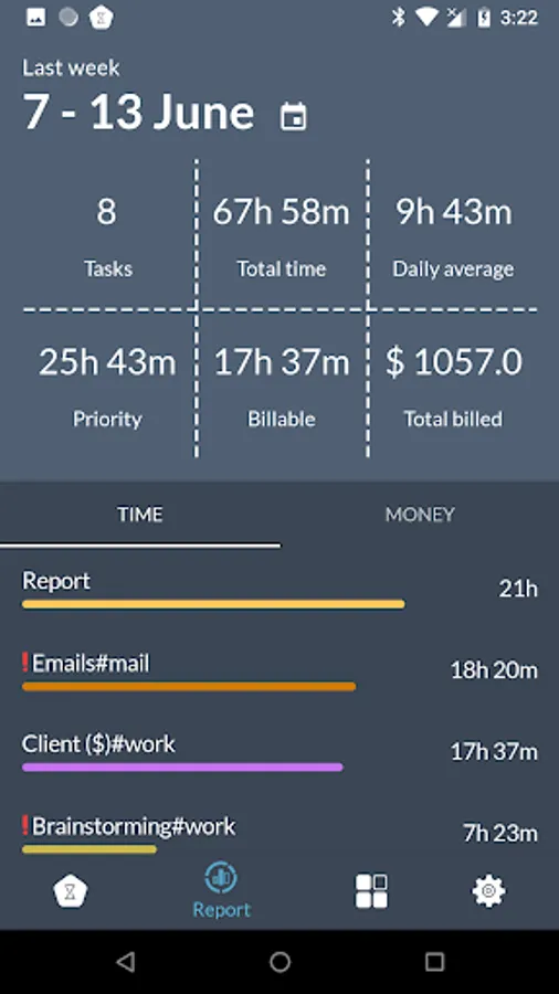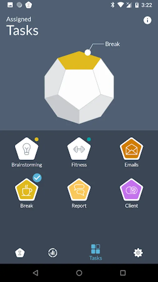 At the start, user marks TIMEFLIP2 sides with the tasks or activities he/she wants to track and assigns them once in the mobile app. Whenever one wants to start tracking a task or activity, he/she simply places TIMEFLIP2 with the corresponding side facing up and the device automatically starts clocking time for it. Thus, all user time stats is logged and visualized in the app or web service and can be exported in xls or csv format.