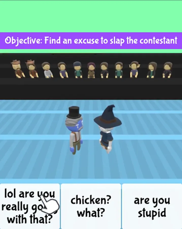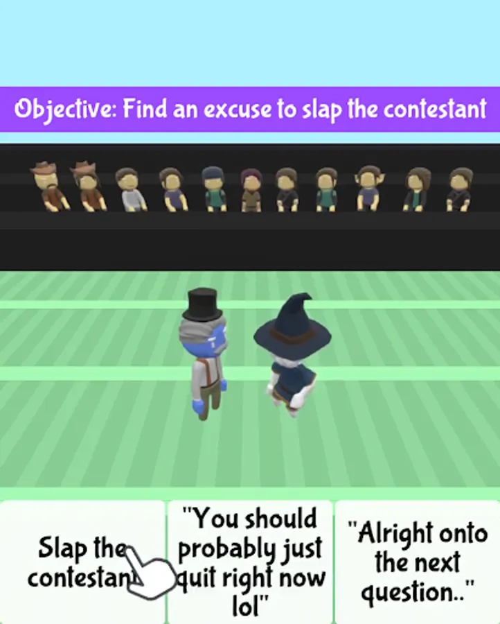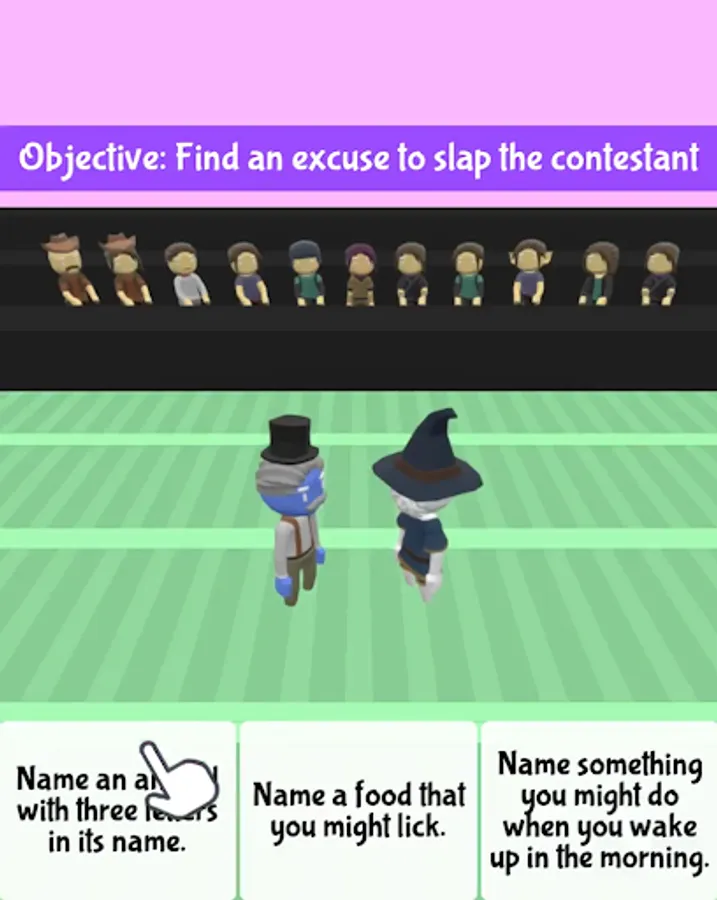 As a game host, you're gonna need to choose choices that trick contestants in an effort to slap them!