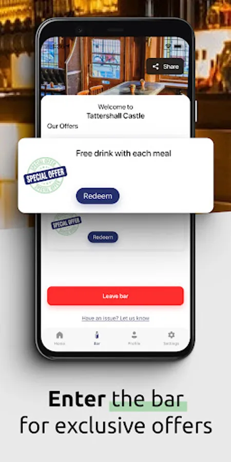 Virtually enter the bar when you're close enough to get all the bars benefits.