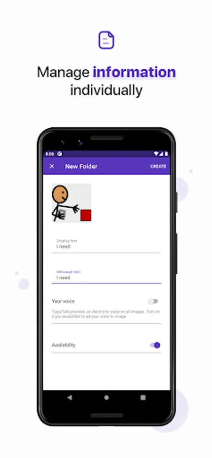 A Manager (usually a parent or other family member) customizes the app with illustrations of the TippyTalker’s favorite things, such as restaurants, toys, places, pets, foods, and activities.