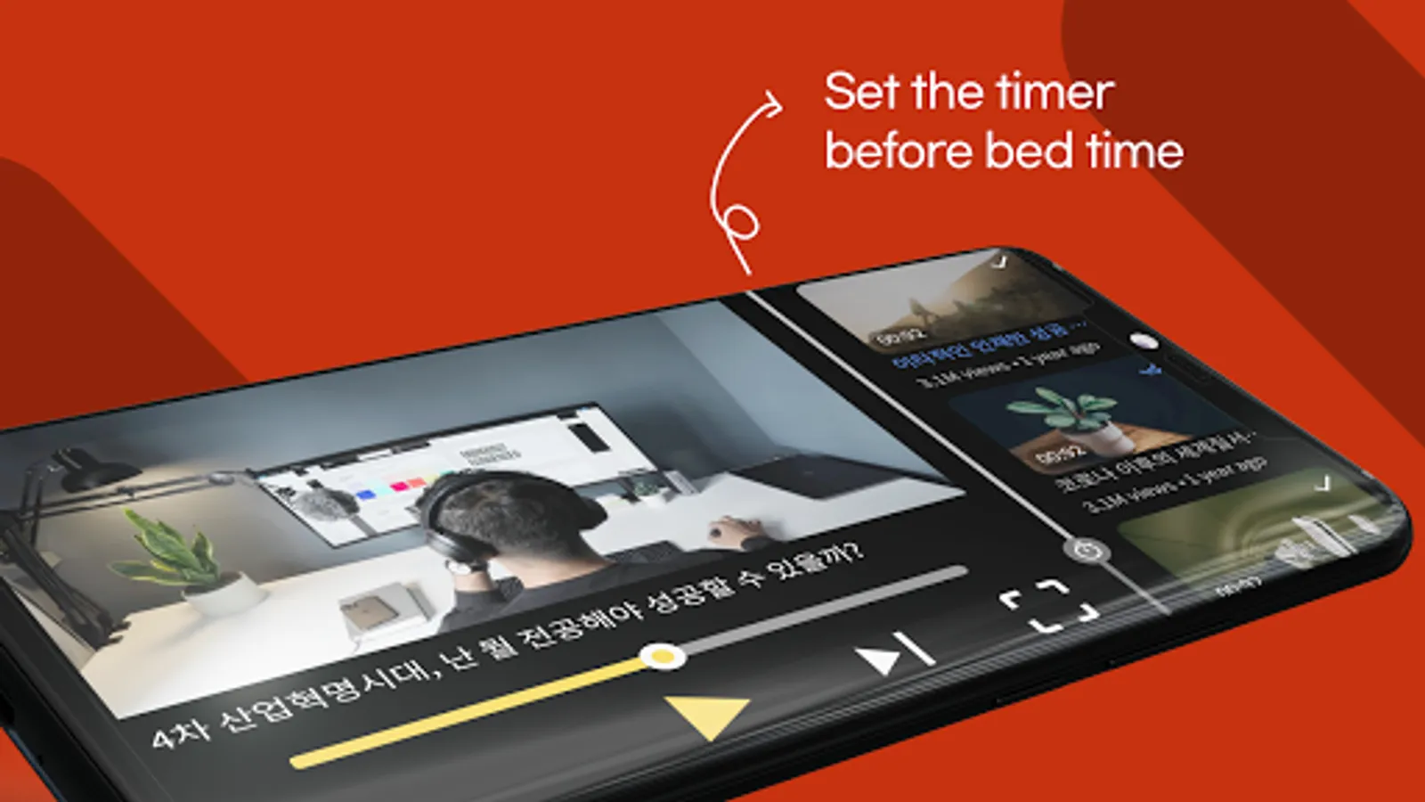 If you want to watch a video before you go to bed or for a specific time, try using the timer. If you use the timer function, the app will end after the set time!