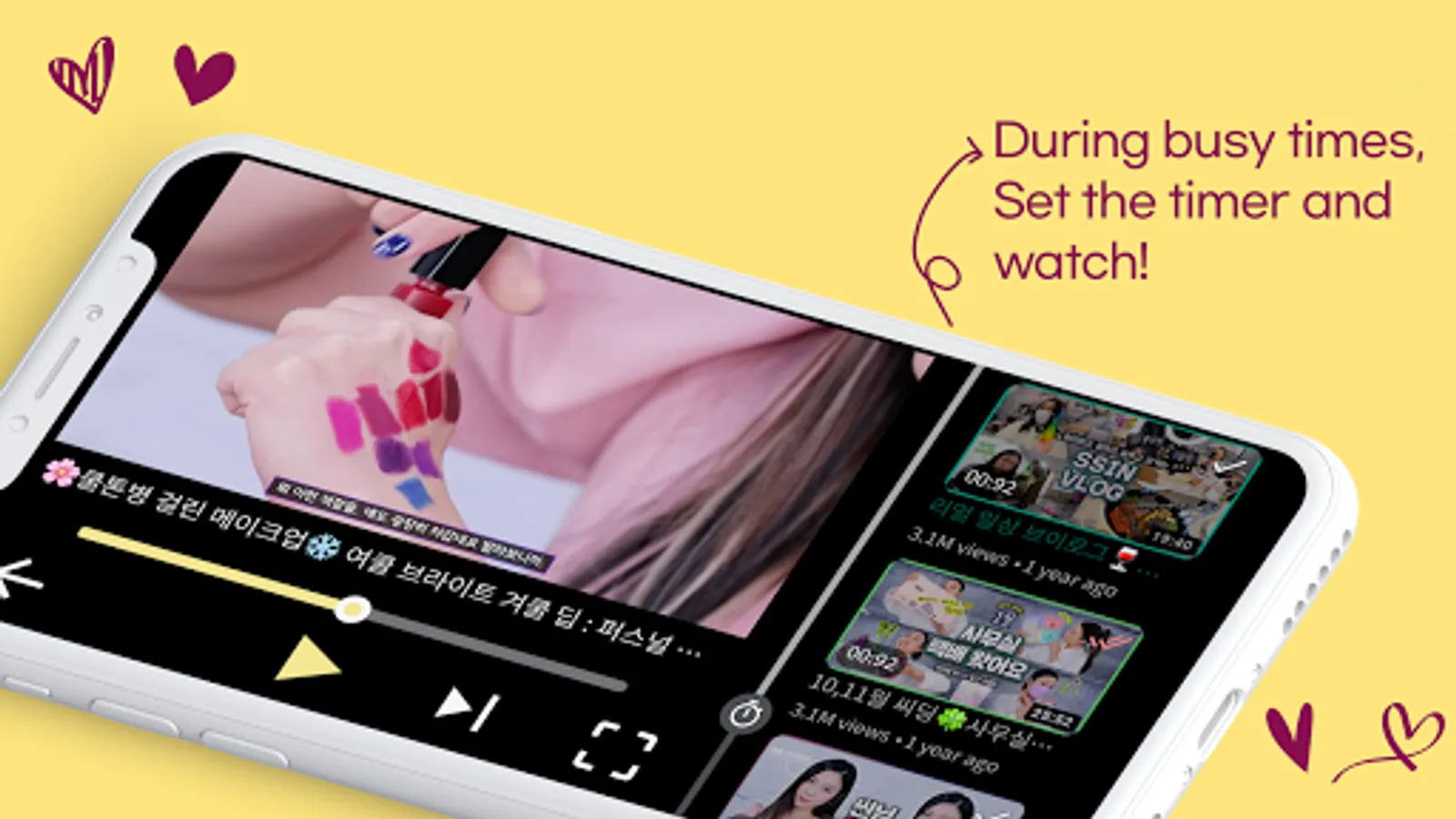 If you want to watch a video before you go to bed or for a specific time, try using the timer. If you use the timer function, the app will end after the set time!