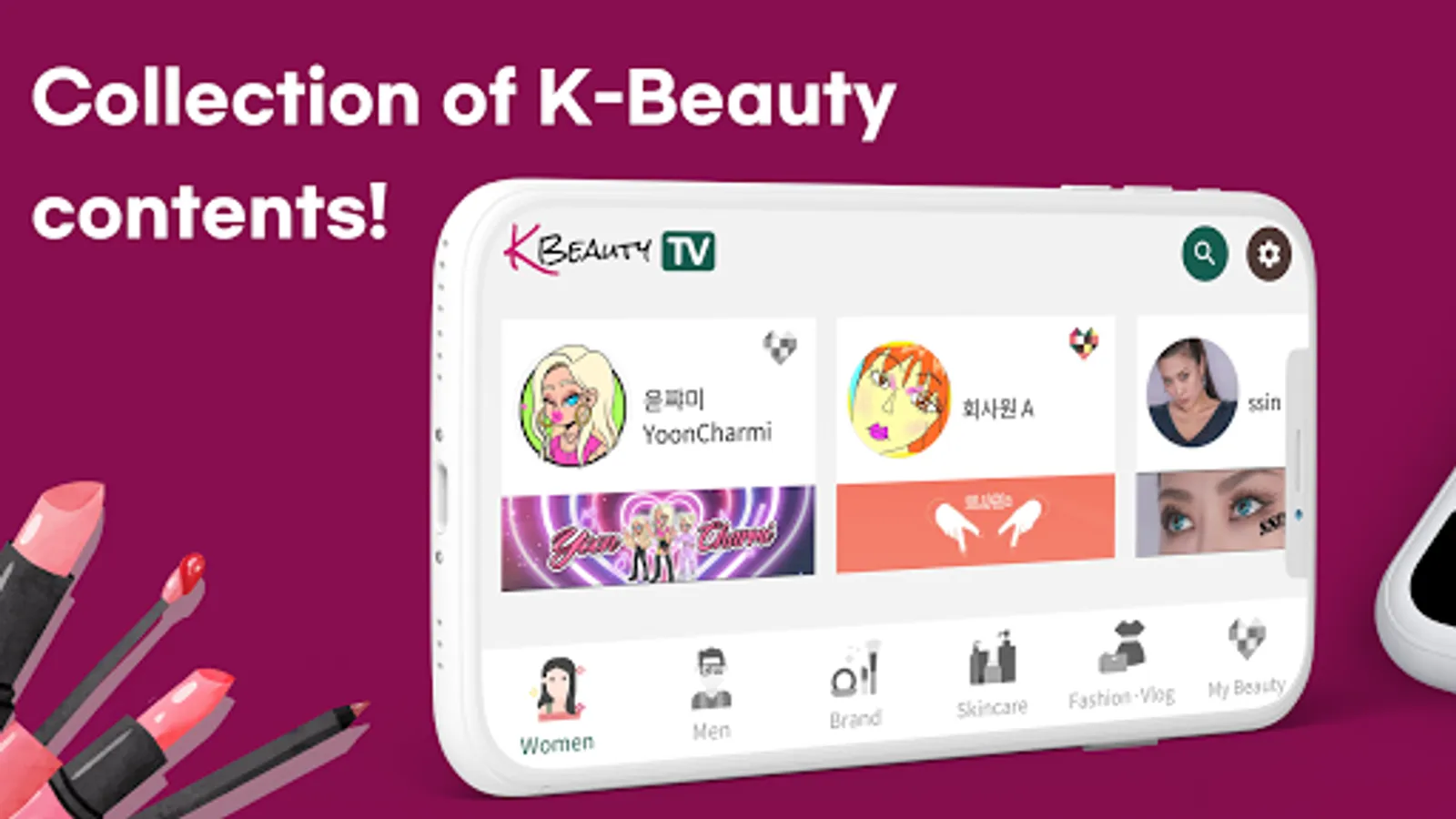 Check out Korea's most popular female and male BeauTuber's skincare, today's makeup method, their Vlogs, and daily look videos on K-Beauty TV!