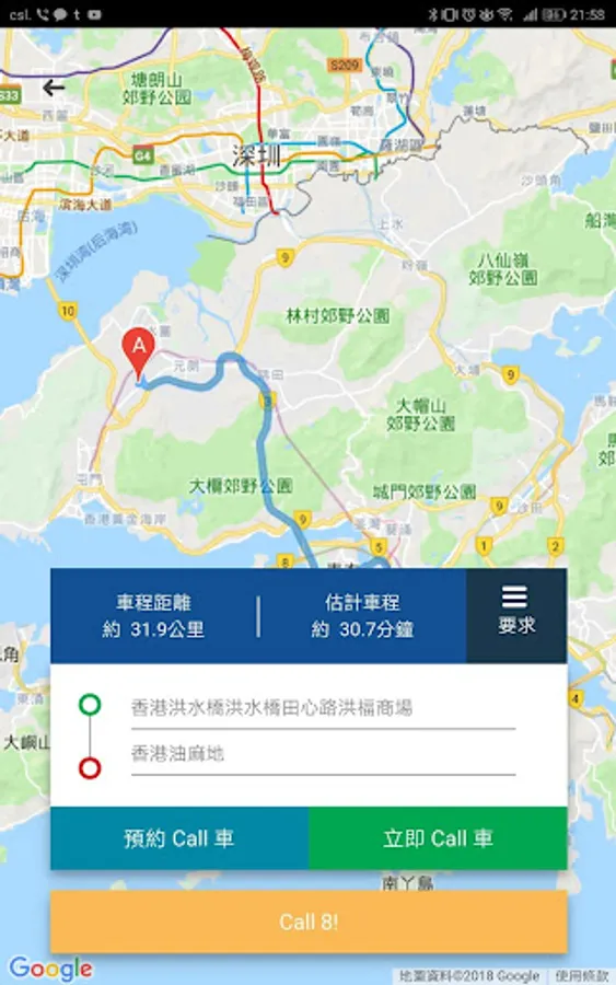 覆蓋市區紅的,新界綠的 隨時隨地打的,叫車,call車
