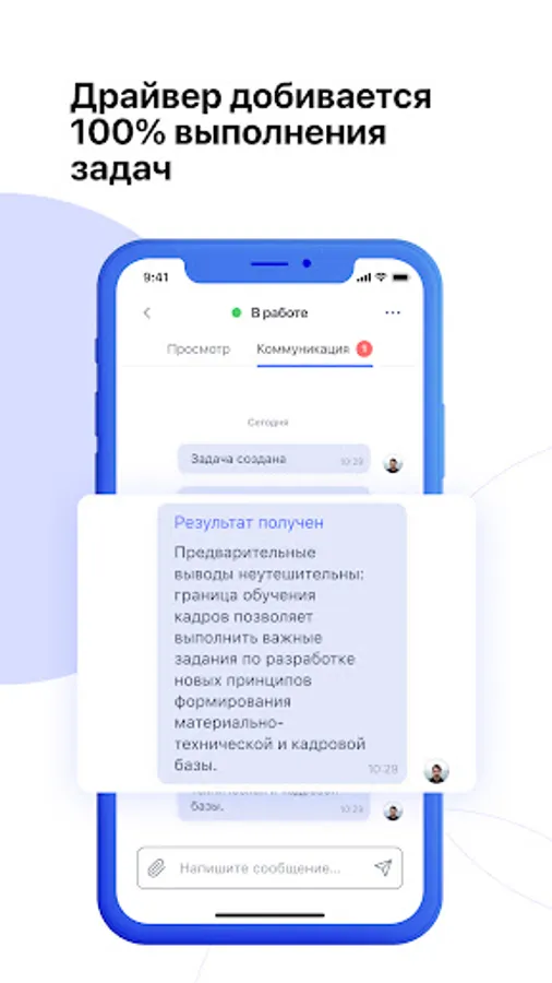 You don't need to be physically at your company's office to manage the process. To run a business, you only need Tonnus. You can see at what stage each task is in progress, you can check the completion of any task using the evidence function, you communicate with the tasks team in Tonnus, and the driver controls the execution.