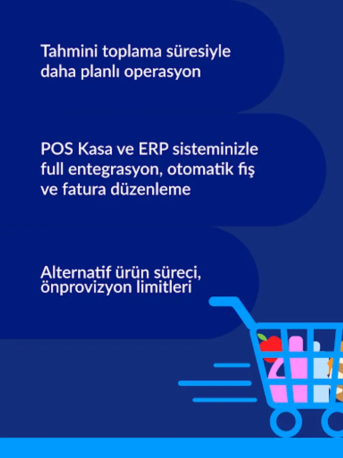 e-Ticaret kanalınızın en kritik oyuncusu hazır: topla.io, siparişlerinizin hızlı ve hatasız toplanmasından izlemeye, ciro raporlamadan pazaryeri entegrasyonlarına kadar, eksiksiz bir platformdur. Uzun yıllara dayanan sektörel deneyimimizle, topla.io'yu pratik ve akıcı kullanıma yönelik tasarladık. İster kasa sisteminizle otomatik fiş/e-fatura düzenleyebilirsiniz, isterseniz ERP sisteminizde e-fatura olarak belgelendirebilirsiniz. Çalışan bazında toplama performansı, teslim edilemeyen/denk ürün tercihleri dahil, toplama analitiğiyle, e-ticaret kanalınızı topla.io ile yönetin.