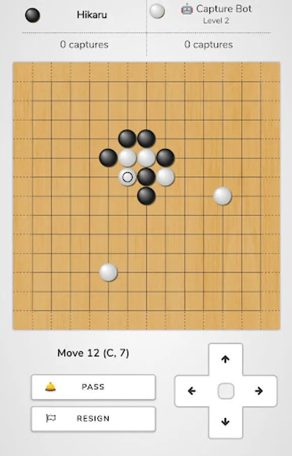 Capture Go is a simpler mode of the Go game where you only have to capture stones to win. Be the first to capture 5 stones against Capture Bot! 🤖