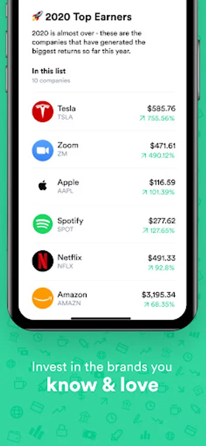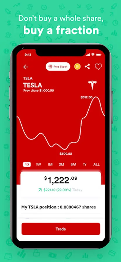 Invest in fractions of US stocks like Google, Apple and Tesla in 4 taps.