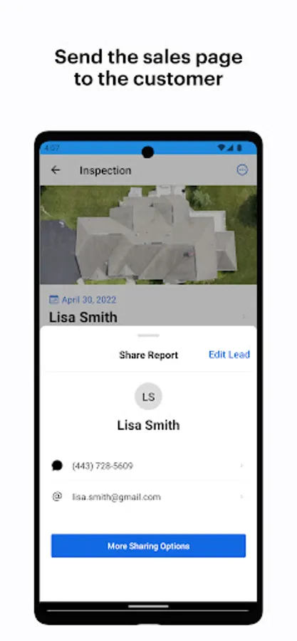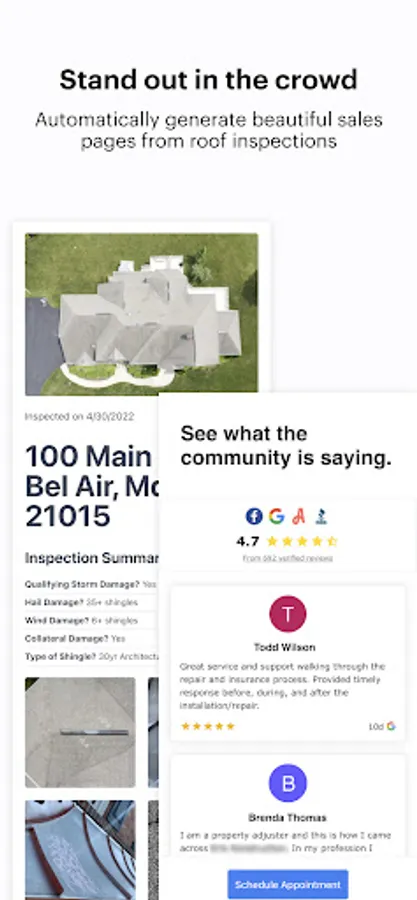 Effortlessly follow-up and deliver more value to your roofing inspection leads. The Tradefront app allows you to easily create sales pages that are dedicated webpages tailored to each roof inspection. Rather than creating a PDF inspection report and sending an email with attachments that are too big to send, simply create a sales page in the Tradefront app. You can include the same roof inspection insights you would normally include in your roof inspection report PLUS: