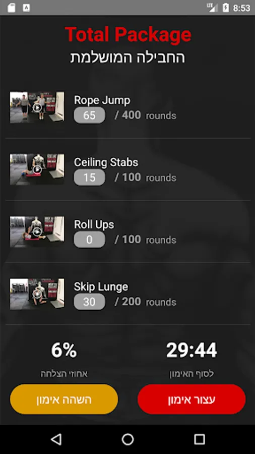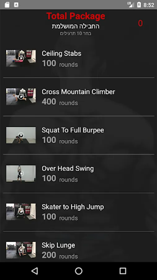 In this method, you choose a workout from 6 different types of training, and then choose 10 exercises that are made up of the entire workout. Each exercise has several repetitions that the athlete must perform in the order that suits him. Choose your workout time and start!