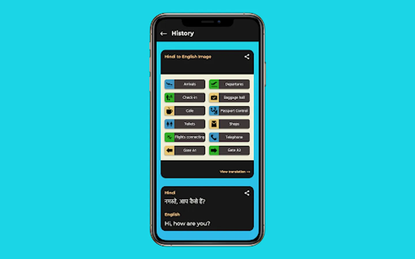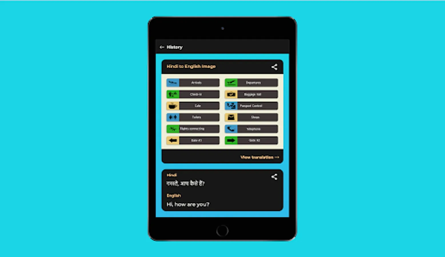Share your translations using other apps, text or email.