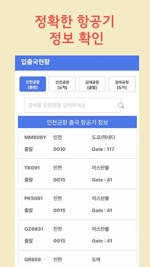 Incheon International Airport, Gimhae International Airport provides real-time departure and arrival status