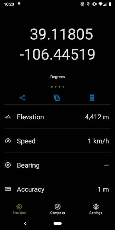 • Screen lock capability: Lock the screen on while the app is open by tapping the screen lock button in the lower right corner of the coordinates