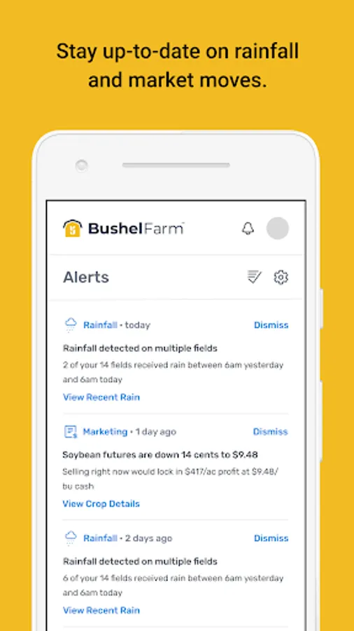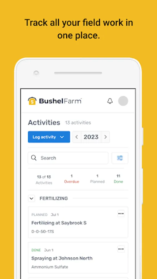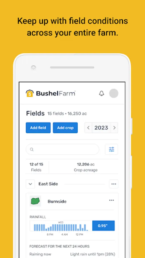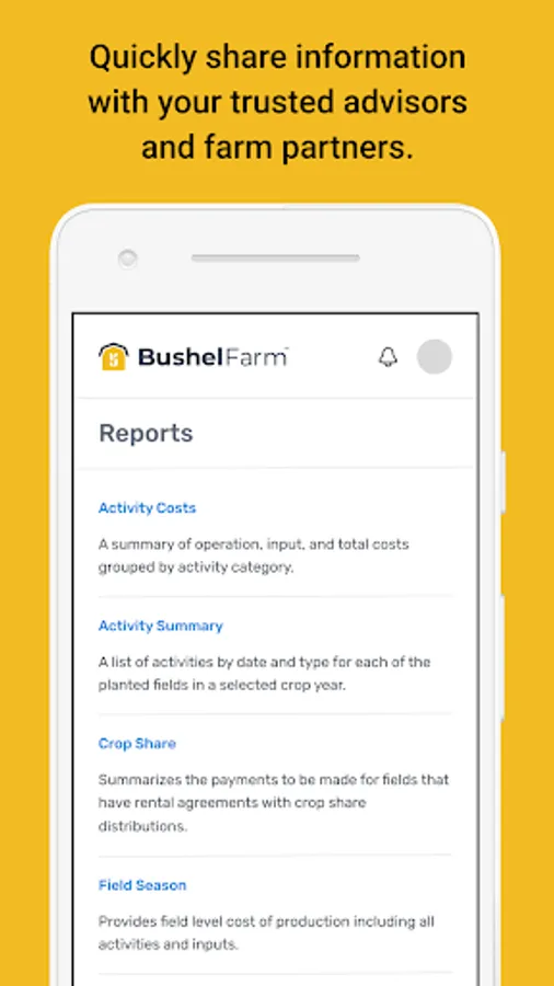 Bushel Farm (formerly FarmLogs) gives farmers both a ground-level and big-picture view of their farm’s operational and financial performance. Unlike multiple spreadsheets or messy notebooks, Bushel Farm organizes and centralizes an array of farm records - field maps, rainfall and satellite imagery, scouting notes, equipment, activities and inputs, grain sales and inventories, land agreements, work orders, and more.
