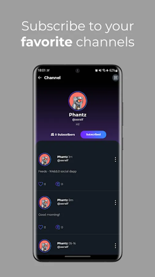 On Feeds channels, publishers create dedicated channels and post to them. Readers subscribe to channels according to their interests and read posts.