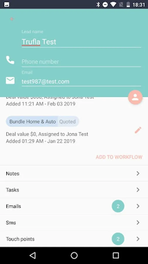 ● Create new leads, add them to workflows, and even assigned them other team members.