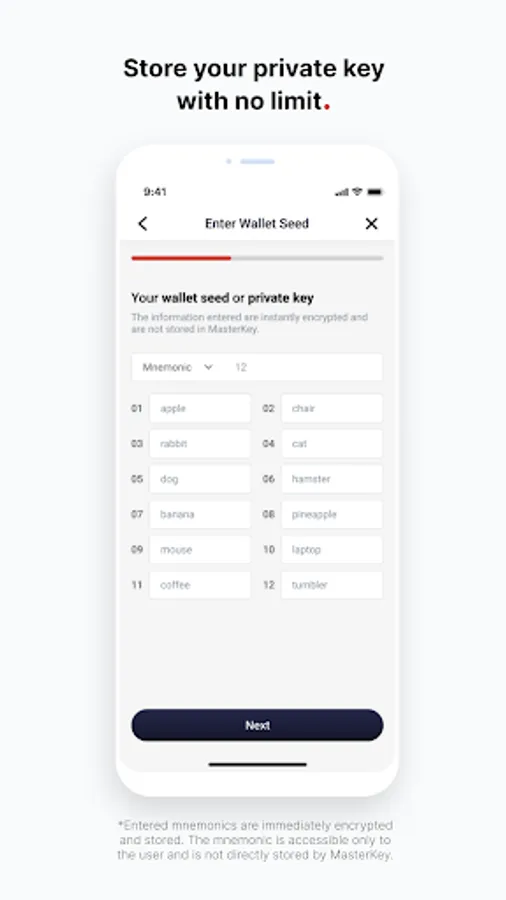 MasterKey does not directly store the user's private key, and even when the private key is restored, only the owner can access the key.