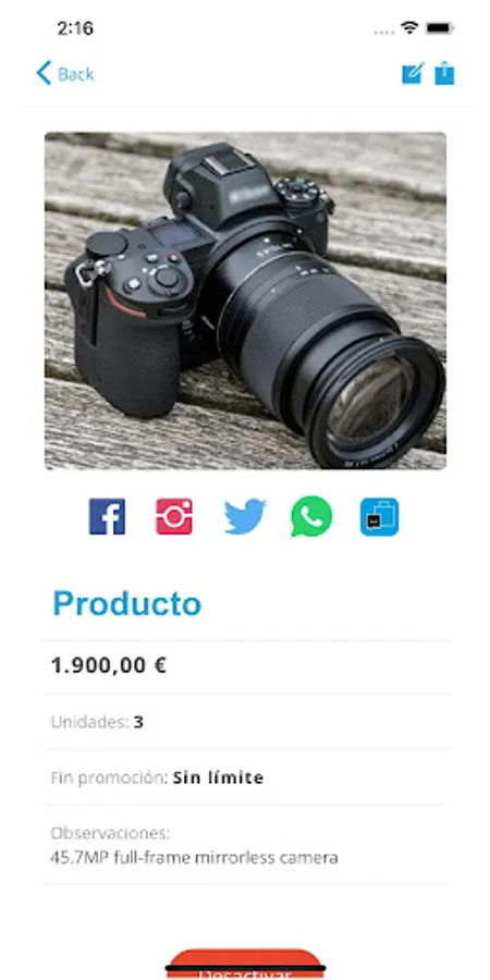 2. Add all the products you want to put on sale, with a photograph, amount and description of the item.