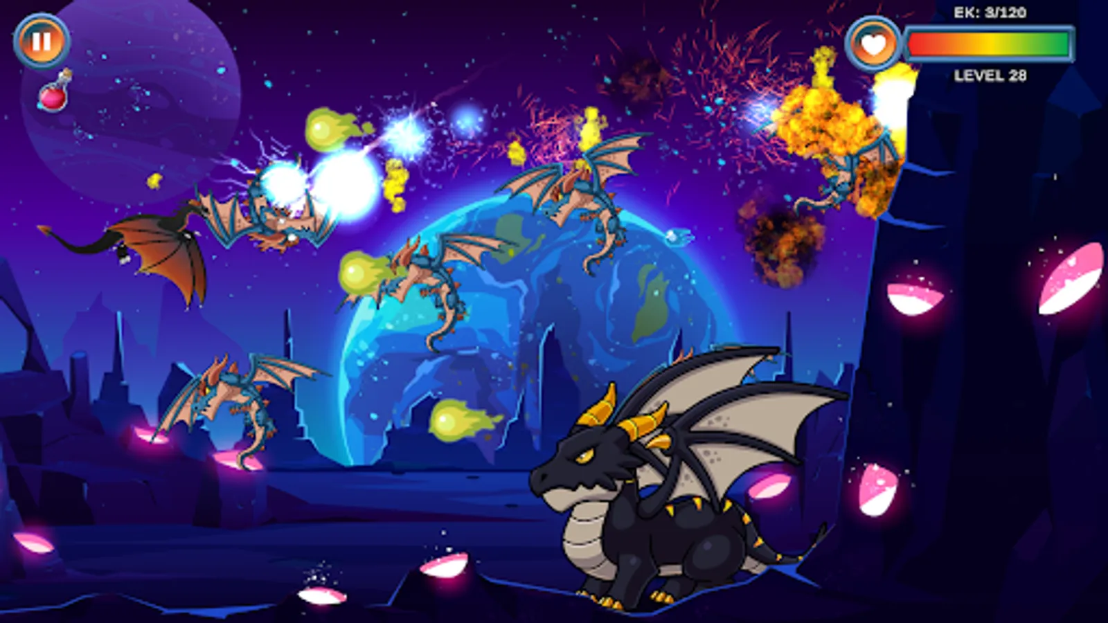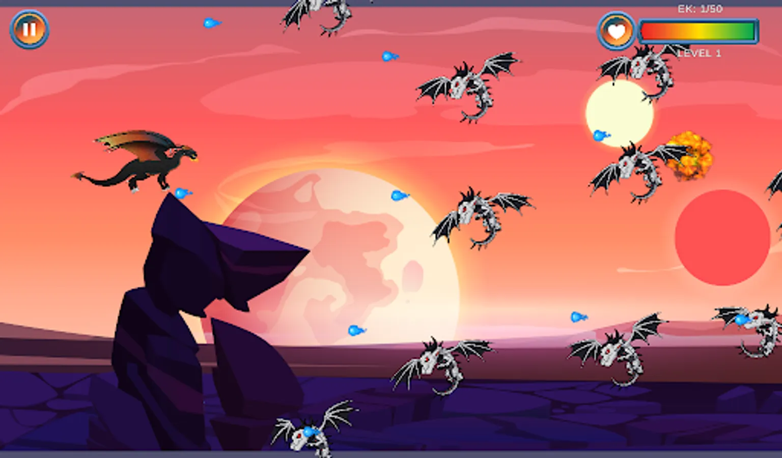 Tsukuyomi Dragon has awaken to protect 6 realms invaded by rival dragons. As he advances through the realms, his power increases from dual to septet fireballs. He awaits for his companion to join him on his journey to protect and restore order and peace to the realms. There are 6 realms and 30 states with diverse challenges. Defeat the general(s) with intelligent fireball shooting to open the portal to enter a new realm.