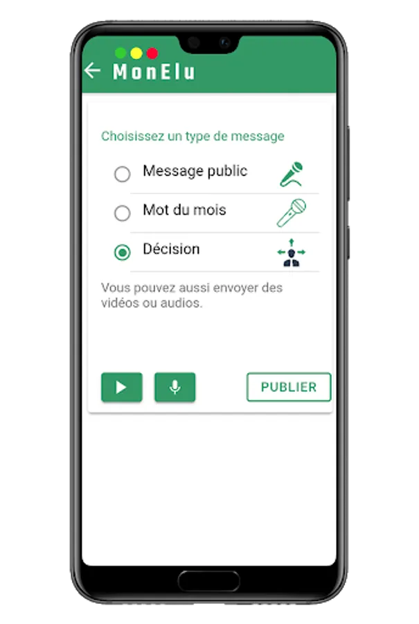 MonElu is a mobile application that creates permanent contact between citizens and their elected officials. It allows citizens to ask questions of elected officials, to make denunciations and even to make proposals for projects or ideas. The citizen thus participates in the management of his municipality, his region and his country. Elected officials are closer to citizens and are better informed on the expectations and opinions of the latter. In this sense, the application is a real decision support tool.