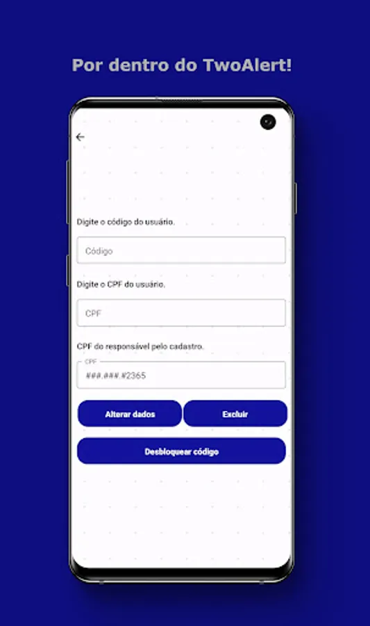 TwoAlert is an essential everyday app that serves as a bridge between you and a stranger you've just met. Whether through social networks or in person, TwoAlert will always require a code for you to check whether what the person says really appears in the Service's information. Data on TwoAlert is always filled in by someone in the family, other than the user you just met. TwoAlert arrived to combat scams that happen on social networks such as "Whatsapp", "Instagram" or even in dating apps such as "Tinder", "Grindr" or others. Easy and simple to use, TwoAlert only requires a login and password and the need to fill out a registration form; Then a code is generated and that's it, you can use the service.
