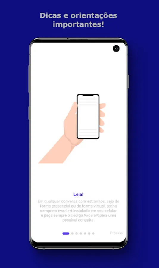 There is the website www.twoalert.com.br, where there are tips and guidelines on how to use the application and there are also buttons for Privacy Policy, Term of Use and also FAQs, which are frequently asked questions. You can use the first registration for free and if you want to register more people you will have to pay only R$ 15.00 (fifteen reais) for every three registrations. Remember, when talking to a stranger, always ask for the TwoAlert code.