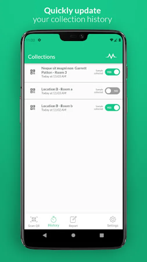 Scan the QR codes which are placed at each specimen collection point to show that you attended to collect specimens. You can record if there were specimens to be collected.