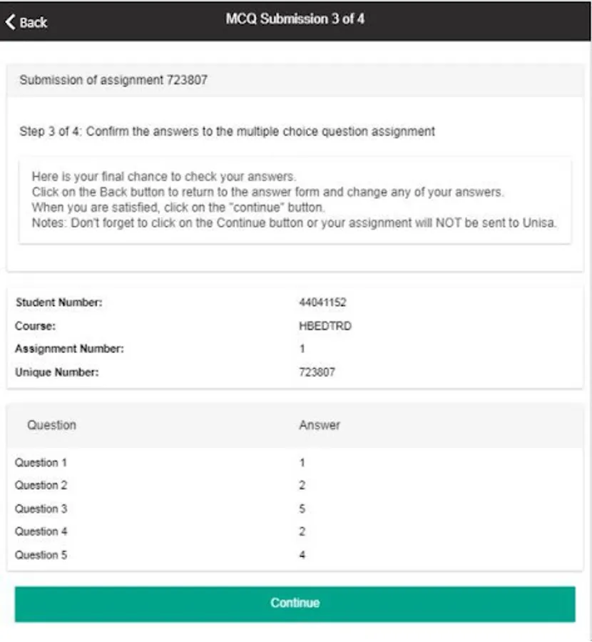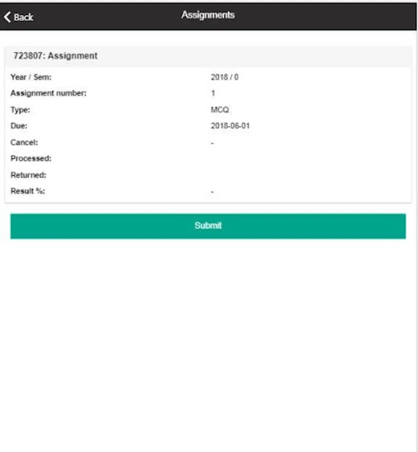 University Of South Africa Mobile App, This App is used to submit Unisa's Multiple Choice Assignments.