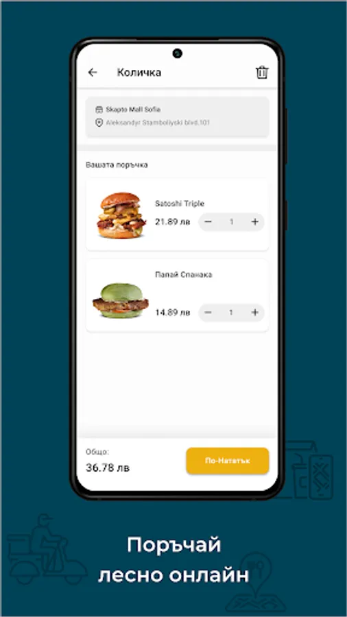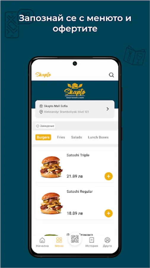 Skapto are the honest Bulgarian gourmet burgers, and now you can order them in your pajamas. Download our app and get lightning-fast delivery of your favorite burgers and beers right at your door. As easy as brushing your teeth while ordering a double Satoshi.