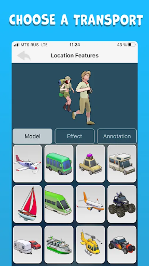 90 unique means of transport await you, including real and imaginary ones. The number of vehicles will regularly increase with each update. Leave comments about vehicles you'd like to take for a spin, but aren't in the app.