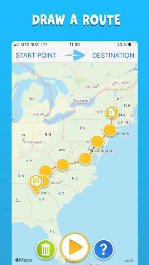 It's really simple. Choose transport, enter your route, press the START button, and enjoy a fun animation of your trip. Share your trips with your friends in the language of video maps.