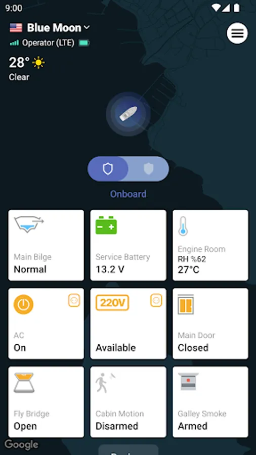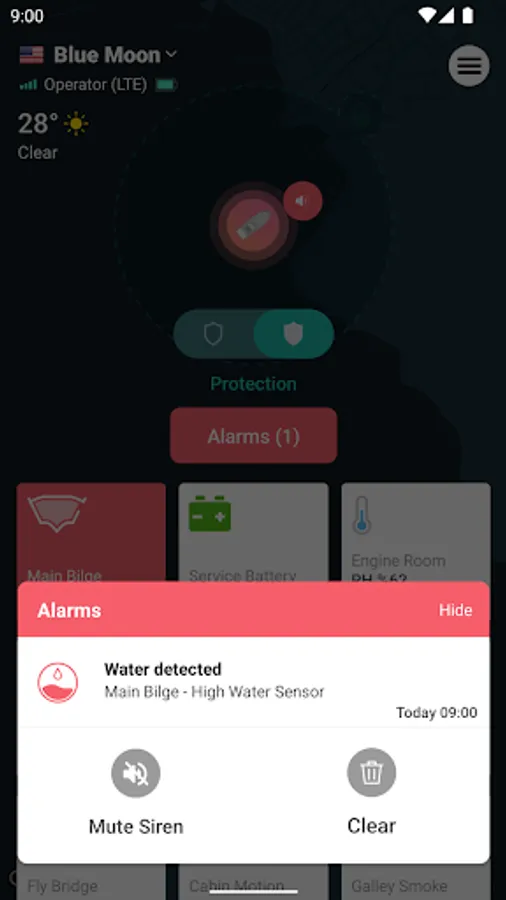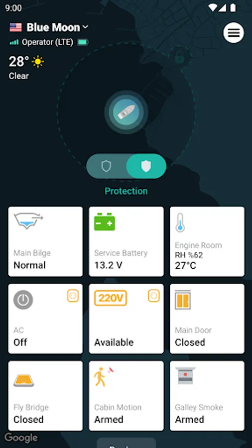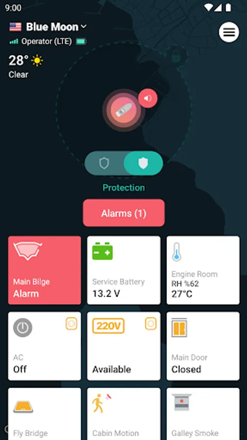 Switch between modes and protect your boat with a single touch. Protection mode automatically creates a geofence around your boat. This mode also arms entry and motion sensors.