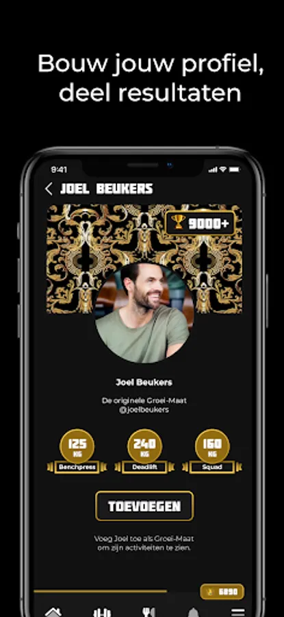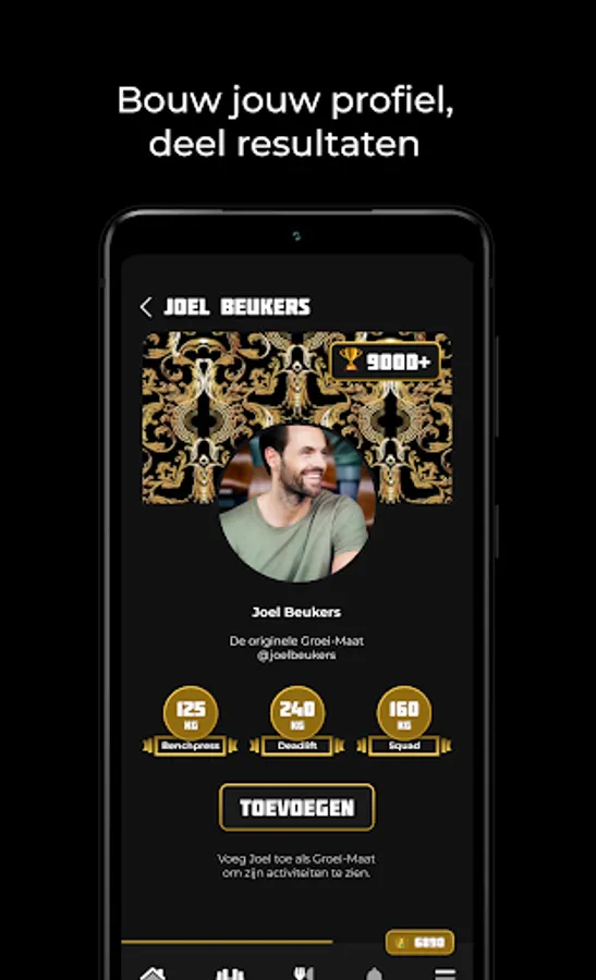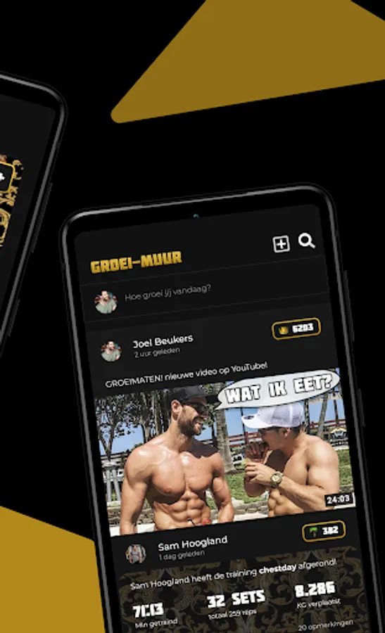 In the App you can view and implement special nutrition and training schedules from Joel Beukers. Each Growth-Mate gets its own profile and can post messages, photos and completed training sessions on the Groei-Wuur.