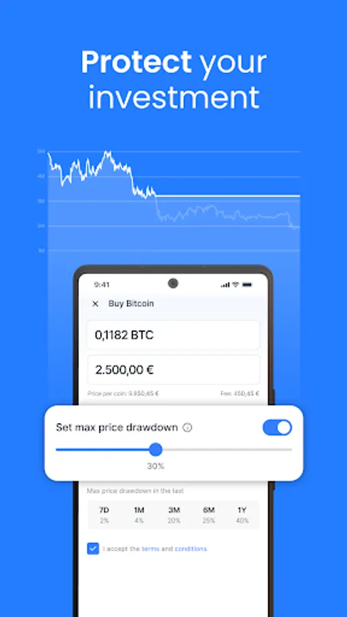 Protecting your investment from price drops has never been easier. Check how much the price dropped in the past and use a simple slider to set downside protection. Automatically, 24/7, without the need for you to be online.