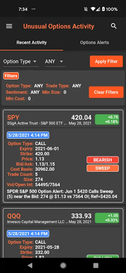 Real Time Quotes & Price Alert/Earnings/Unusual Options/Analyst Rating Notifications