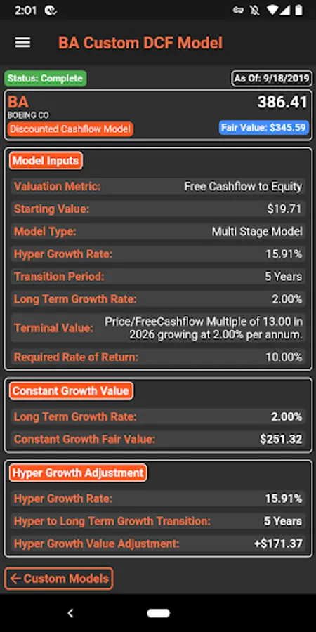 ✔ Scenario Analysis Models: Specify multiple Bull/Bear scenarios for the business fundamentals of the target company and our sophisticated algorithm will determine fair value metrics for each scenario and discount it back to a fair value for the company today based on your required rate of return.