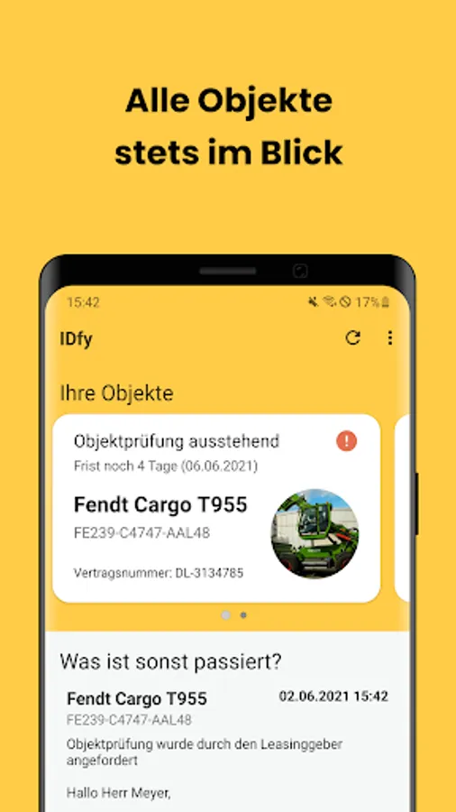 With the IDfy app you have an overview of all your objects and you can see immediately whether an object needs an action.