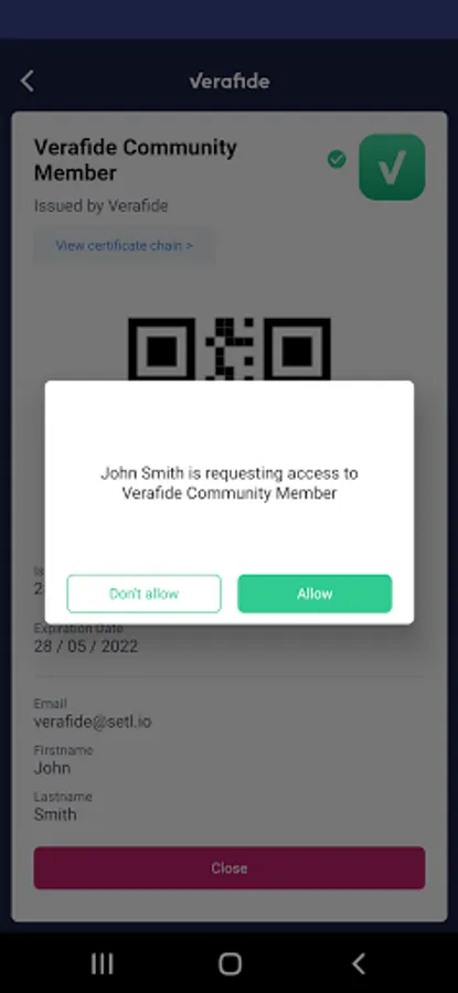 You can hold and verify a range of credentials such as Membership, KYC, Identity, Staff Safety, Qualification Verification, Age Verification, Pets, Prescriptions and more