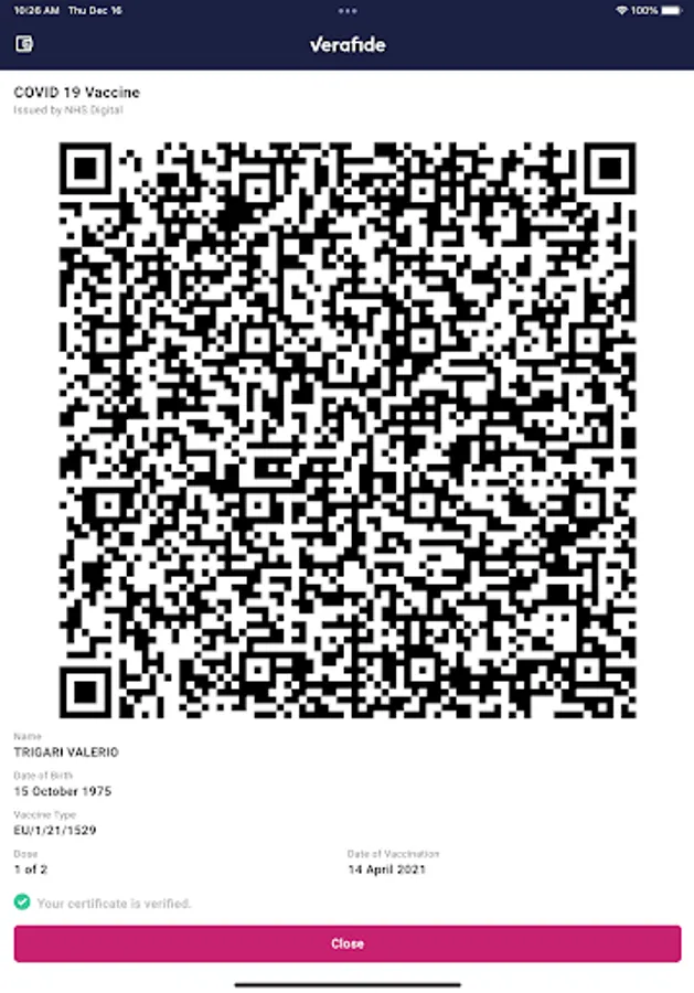 Vax Verafide definitively will scan, verify, and store your NHS Green Pass credential QR-code. Now, more than ever, it is becoming increasingly important to have access to an app that will safely store and share your credentials without the added bulk of useless features. With a sleek, simple, easy to use design, Vax Verafide lives up to its namesake. Protect and safely present your credentials with Vax Verafide.